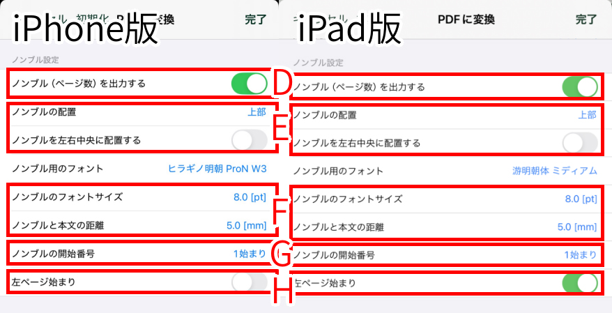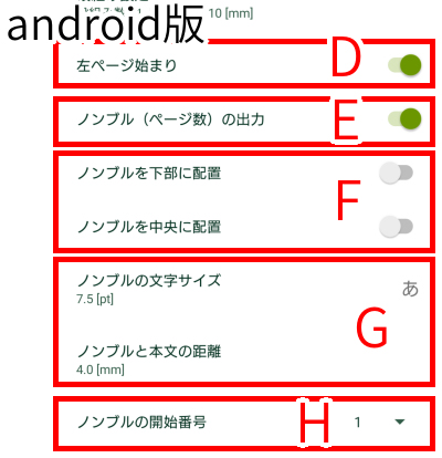 「ノンブル(ページ数)の出力」は、必ずONに設定をしてください。