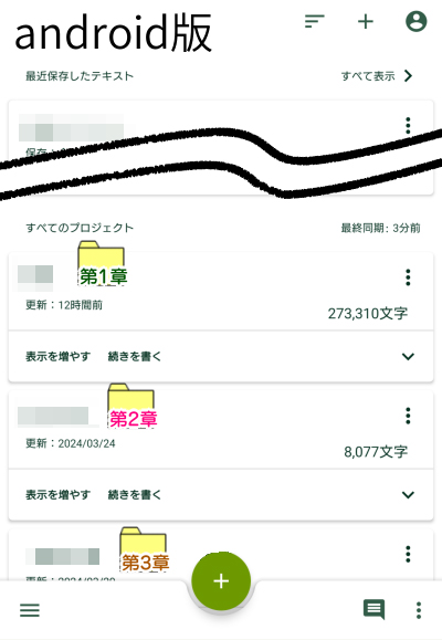 複数の章に分かれている場合や短編集などの場合は、プロジェクトを使うことで整理がしやすくなります。-