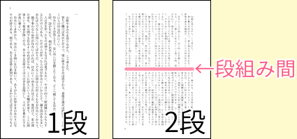 2段組みの設定や段の間の間隔を設定することが出来ます。