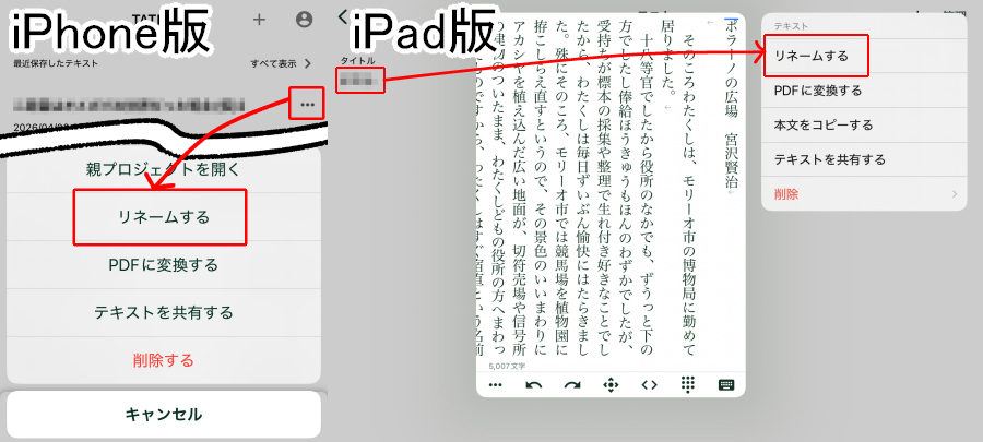 iPad版は、プロジェクト名を長押しで入力可能です。
