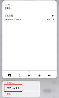 iPhone版は、プロジェクト名を長押しでもメニューを開くことが可能です。