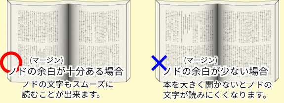ノドの余白(マージン)が十分であれば、ノド側の文字もスムーズに読むことが出来ます。