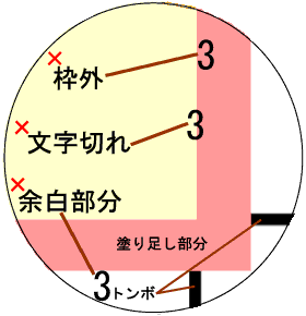 - ノンブルを仕上がり線の上に打ってはいけません。