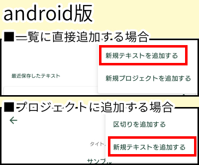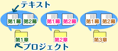 「プロジェクト」は、複数のテキストを入れることが出来る入れ物(フォルダ)です。
