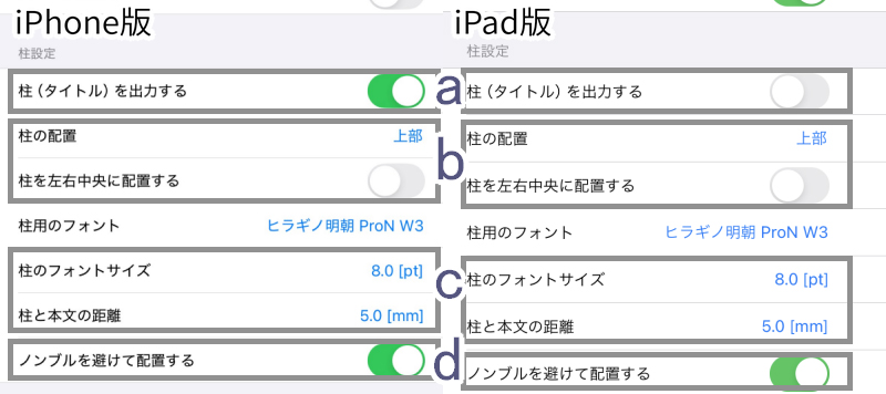 2段組みの設定や段の間の間隔を設定することが出来ます。