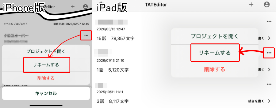 iPad版は、プロジェクト名を長押しで入力可能です。