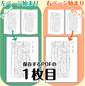 「左ページ始まり」をONにすると、先頭ページの先頭が奇数ページとして設定がされます。